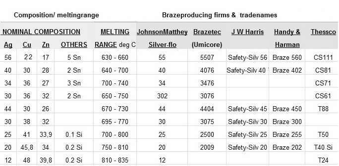 en van Castolin: www.castolin.com, van J.W.Harris (USA) www.jwharris.com ; en Johnson Matthey (Engeland) www.jm-metaljoining.com