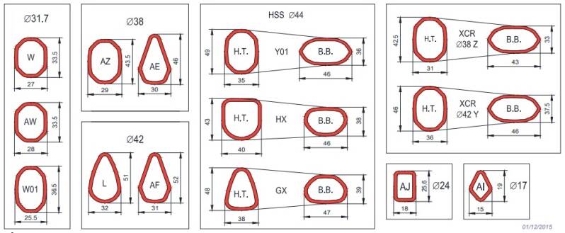 FIG. 14 Cross section of tubes that can be ordered at Columbus; near the headtube vertical, near the bracket horizontal.