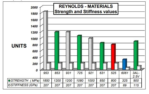 FIG.4b Reynolds steel compared with their aluminium 6061 en titanium 3Al-2.5V