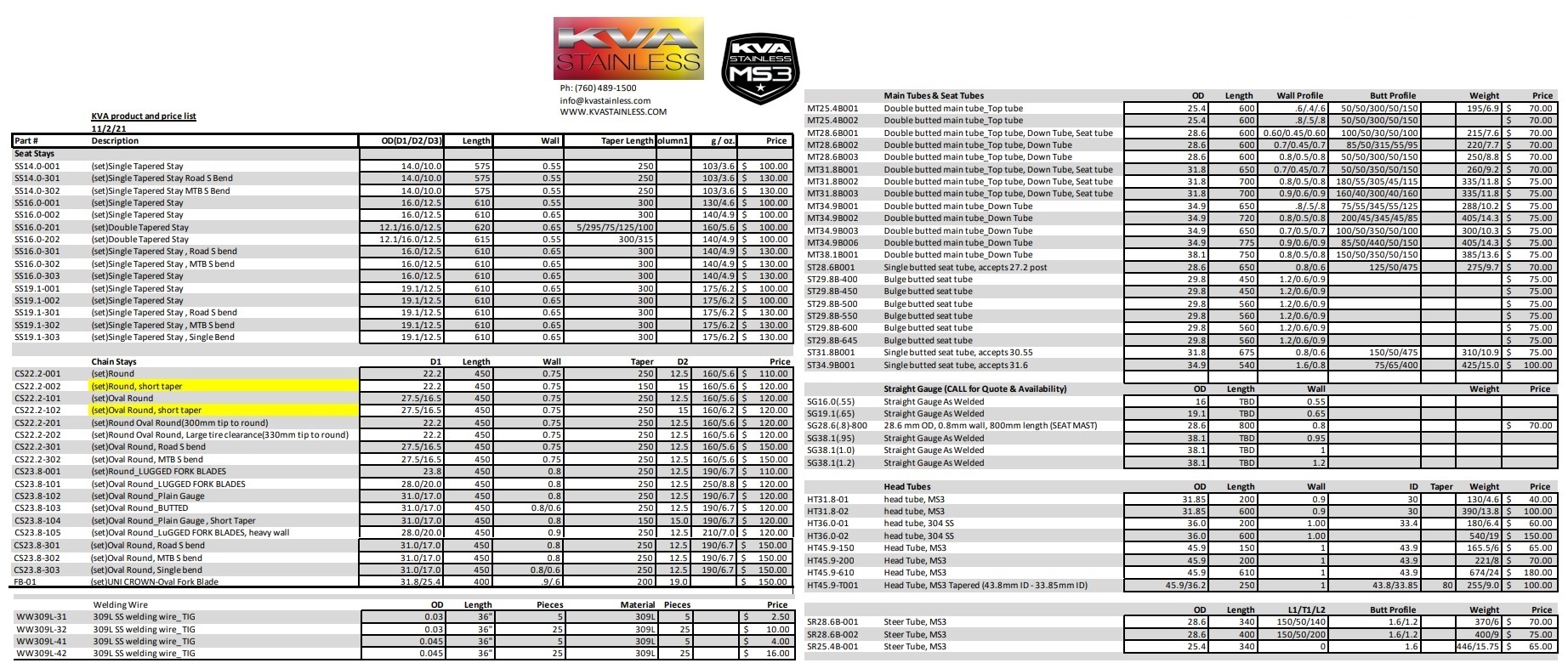 The American manufacturer KVA, has started offering "mar-aging" tubes; they also supply fork parts, other manufacturers do not. A special feature is, that these tubes are not always seamless. The chemical composition of this AISI 630 (17-4 Precipitation Hardning) is: C 0.07% Cr 17% Ni 4% Cu 4% Nb 0.4%.