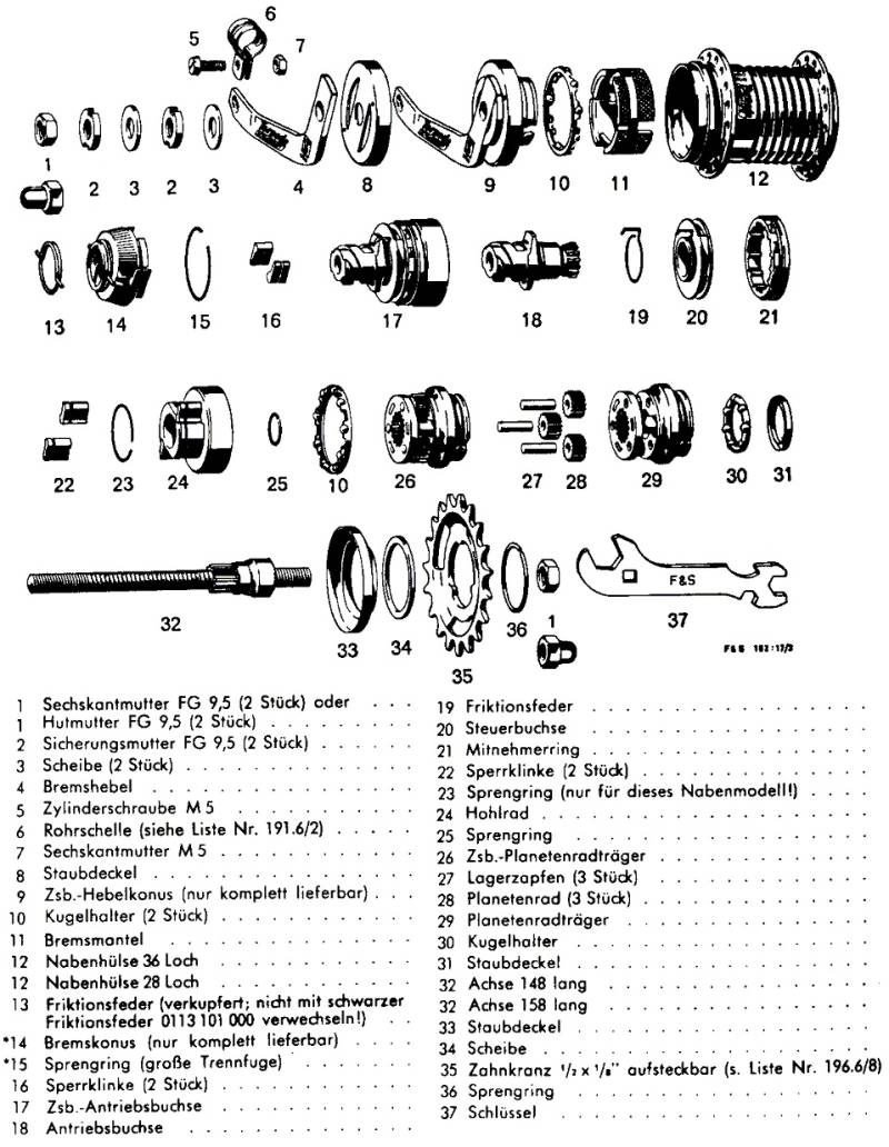 Alle versnellingsnaven van Fichtel & Sachs hebben vanaf 1958 een codeletter, die het bouwjaar aangeeft. Deze staat vaak naast de afkorting “F&S” op het naafhuis, of naast het spaakgetal.