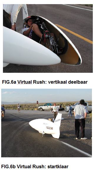Hier zien we enkele van de snelste fietsen op dit moment. De geschatte Cw-waarde is 0,1. Virtual Rush is een radicaler ontwerp. Er is voor de rijder geen uitzicht via een raampje, maar er is een camera met een schermpje gemonteerd (geschatte Cw is 0,09). Vermoedelijk is de Eivie (FIG.7a) het ontwerp met de laagste Cw-waarde: circa 0,07. De rijder zit/ligt met z'n rug in de rijrichting en kijkt via een spiegeltje door een miniem venster naar voren. Het frontaal oppervlak van deze ontwerpen is rond de 0,2m². Bij Virtual Rush zien we een staartvlak verschijnen (extra weerstand!); ook het uiteinde van Eivie neigt naar zo'n staartvlak. Het blijkt dat een zeer goede aerodynamica de stabiliteit op hoge snelheid vermindert; een verschijnsel dat al bekend was van sport-wagens en gemotoriseerde snelheidsrecords. Je zou het kunnen verbeteren door het drukpunt van de lucht achter het zwaartepunt te schuiven, maar dan vermindert de zijdelingse stabiliteit.... (de wet van Cruiff). Om redelijk stabiel te zijn bij zijwind, moet het drukpunt van de lucht voor het zwaartepunt liggen. Varna scoort hier beter dan Eivie en Virtual Rush; die zouden de neus verder omlaag kunnen trekken, maar dat kost weer extra vermogen.