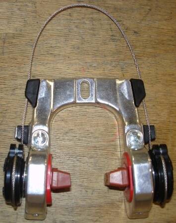 Around 1970 Campagnolo made a sidepull brake that was good enough for racing. Many other brake manufacturers followed the fashion and in FIG.17 we see the Shimano Dura Ace version. The mechanical ratio's of the brake are much better than those of the sidepull Tourney brake in FIG. 18 and the brake is stiff enough. The Parapull from FIG.19 had a less ideal mechanical ratio and was dumped after a year.