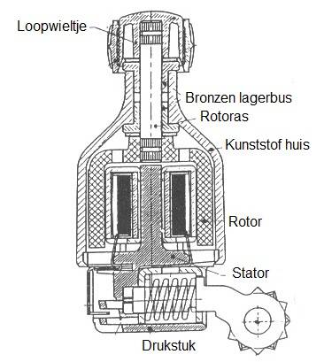 FIG.6c De rotor met magneten draait; de stator met de koperdraden waar stroom wordt opgewekt, staat stil.