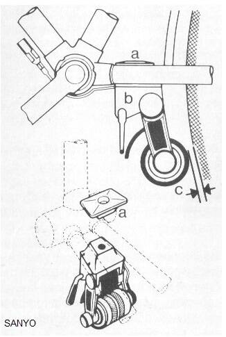 Zie FIG.6a In de jaren '20 kwam dynamo-verlichting op de markt. De dynamo, aangedreven door het het wiel, genereerde stroom om de lampjes te laten branden. Alle dynamo's produceren wisselstroom (AC), maar gelijkrichters kunnen dit veranderen in (pulserende) gelijkstroom (DC). De rol die het contact met de band verzorgde sleet relatief snel, en zorgde voor een slippende dynamo, zeker bij regen en sneeuw. In de jaren '70 kwam de roldynamo, die op het loopvlak van de band draaide. Zie de Sanyo van FIG.6d. Er zijn in de jaren '80 meer fabrikanten met dit type op de markt gekomen, maar dit was in de hogere prijsklasse. In de jaren twintig en dertig was er geen echte consensus over spanning en vermogen. Na de oorlog was het in het algemeen: 3 Watt (6V en 0,5A). Verliezen bij gebruik van een goede naaf- of roldynamo zijn 2-3W; bij goedkope en/ of slecht afgestelde dynamo's kan dat oplopen tot boven 10W , zie FIG.6b.