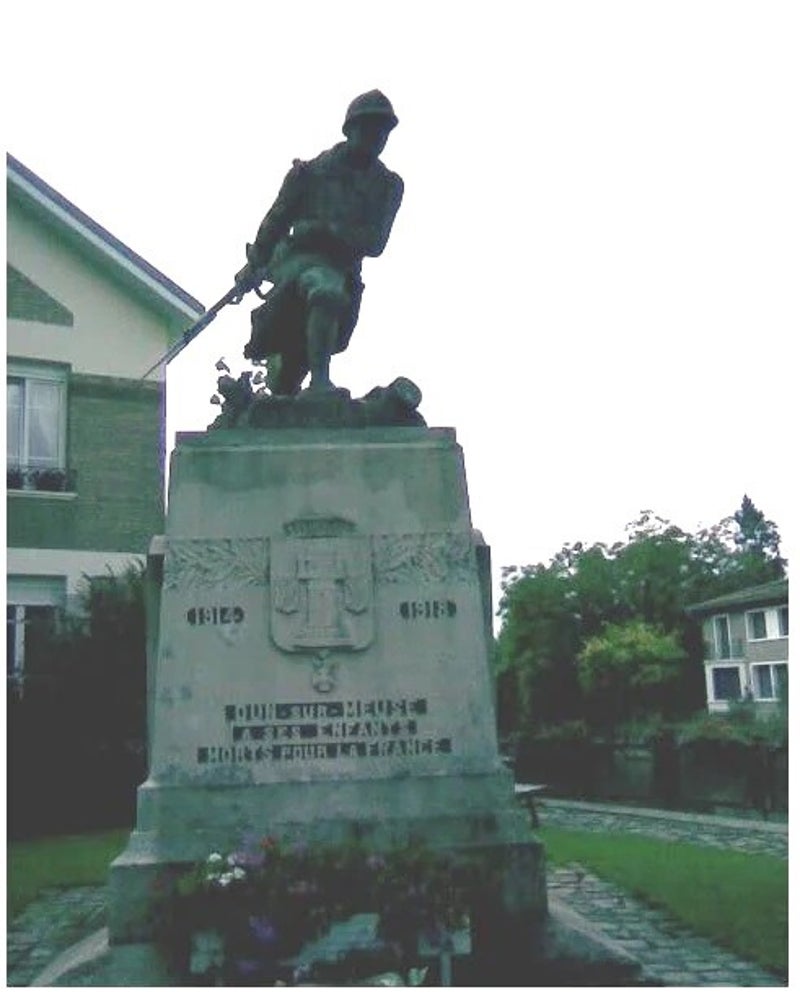 Het regent de volgende ochtend weer, als ik richting Chalons-en-Champagne rijd. De oorlogsmonumenten nemen in aantal toe, vooral bij Montfaucon is heftig gevochten. De Amerikanen hebben hier een belangrijke overwinning geboekt (ten koste van veel doden). Voor het eerst komt er ook een vakantiefietser van de andere kant. We praten even, en dan blijkt dat het iemand is, die maar is omgedraaid vanwege het weer. Het regenen kan hij niet stoppen, maar hij heeft nu wel de wind mee.